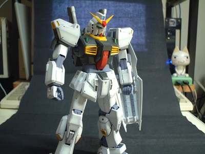 正座 このmkII Ver2.0といのは、「PGを小さくしたようなもの」らしいんですよ、どうやら。 しかし、今回トップコートを吹いていない関係で、少し動かすたびに、パーツが擦れて塗装が剥げないように細心の注意を払う必要があったりなんかして、、、超緊張する。 聖緊張する。 |