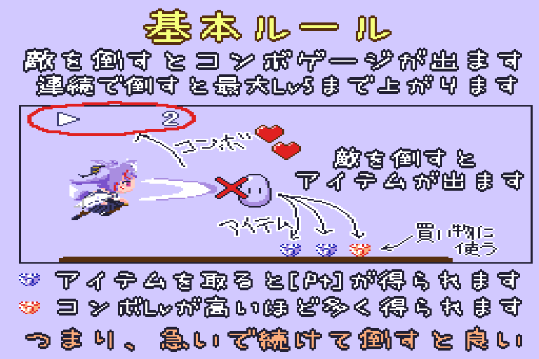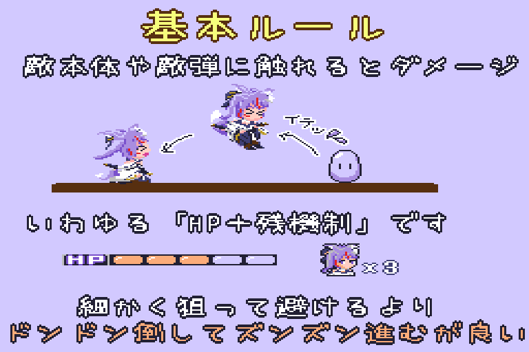 ゲージがない状態でダメージを受けるとミスとなり、プレイヤーの残数が減ります。