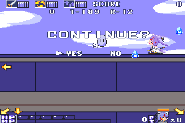 コンティニュー直後は、攻撃,魔法,MP回復速度がそれぞれLv3まで回復します。
