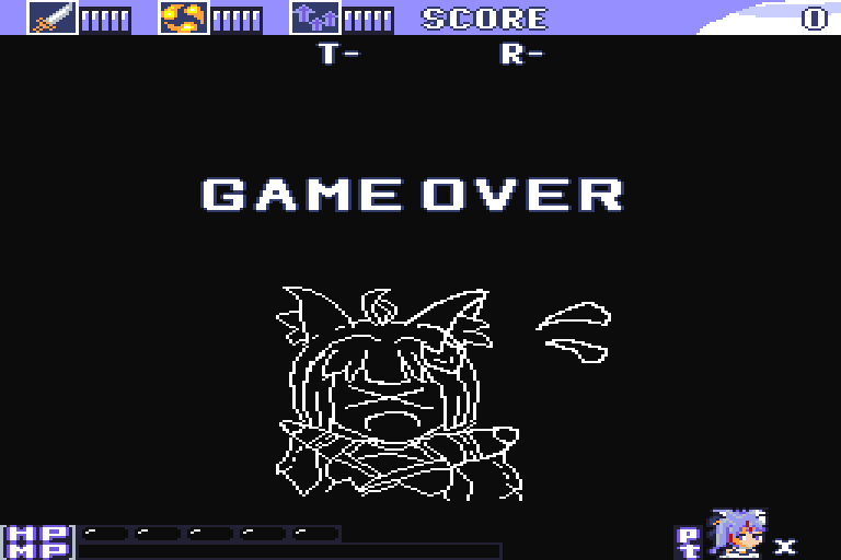 プレイヤーの残数が0のときにミスになるとゲームオーバーです。